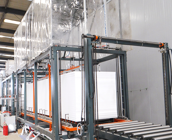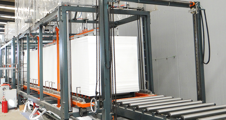 根據需求將烘房養(yǎng)護后的EPS大板塊切割成客戶定制規(guī)格,其它形狀的適合于工程使用的板塊。